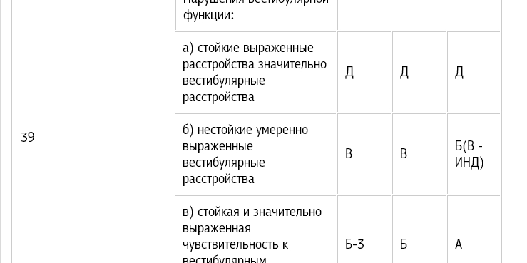 Всего в расписании предусмотрено пять категорий годности к военной службе: А - годен к службе; Б - подходят с небольшими ограничениями; С - ограниченная посадка; Д - временно негодный; Е - не годен к военной службе.