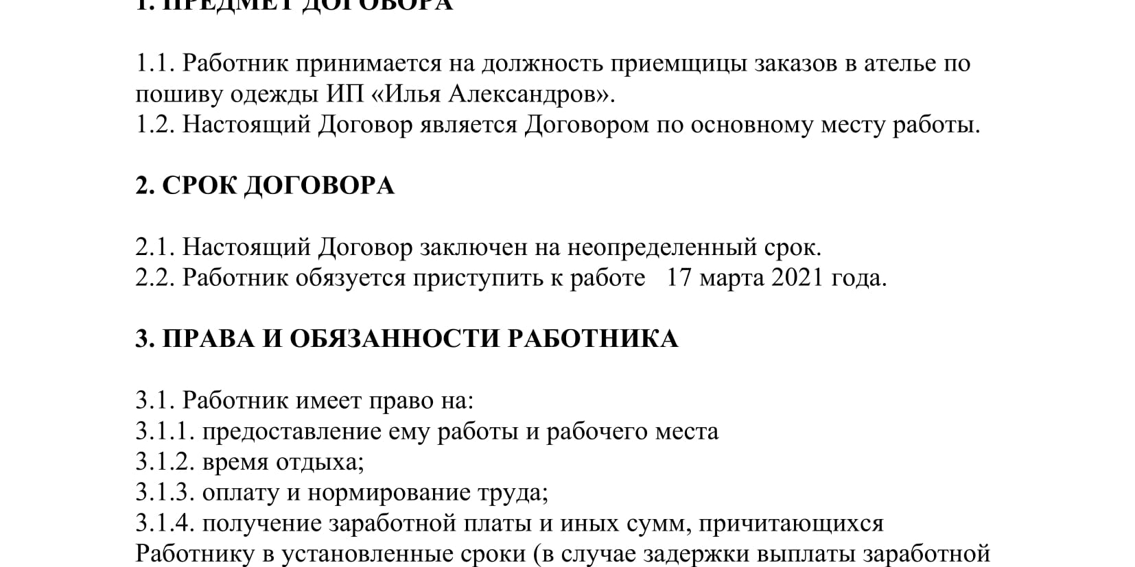 Нюансы договора между ИП и работником