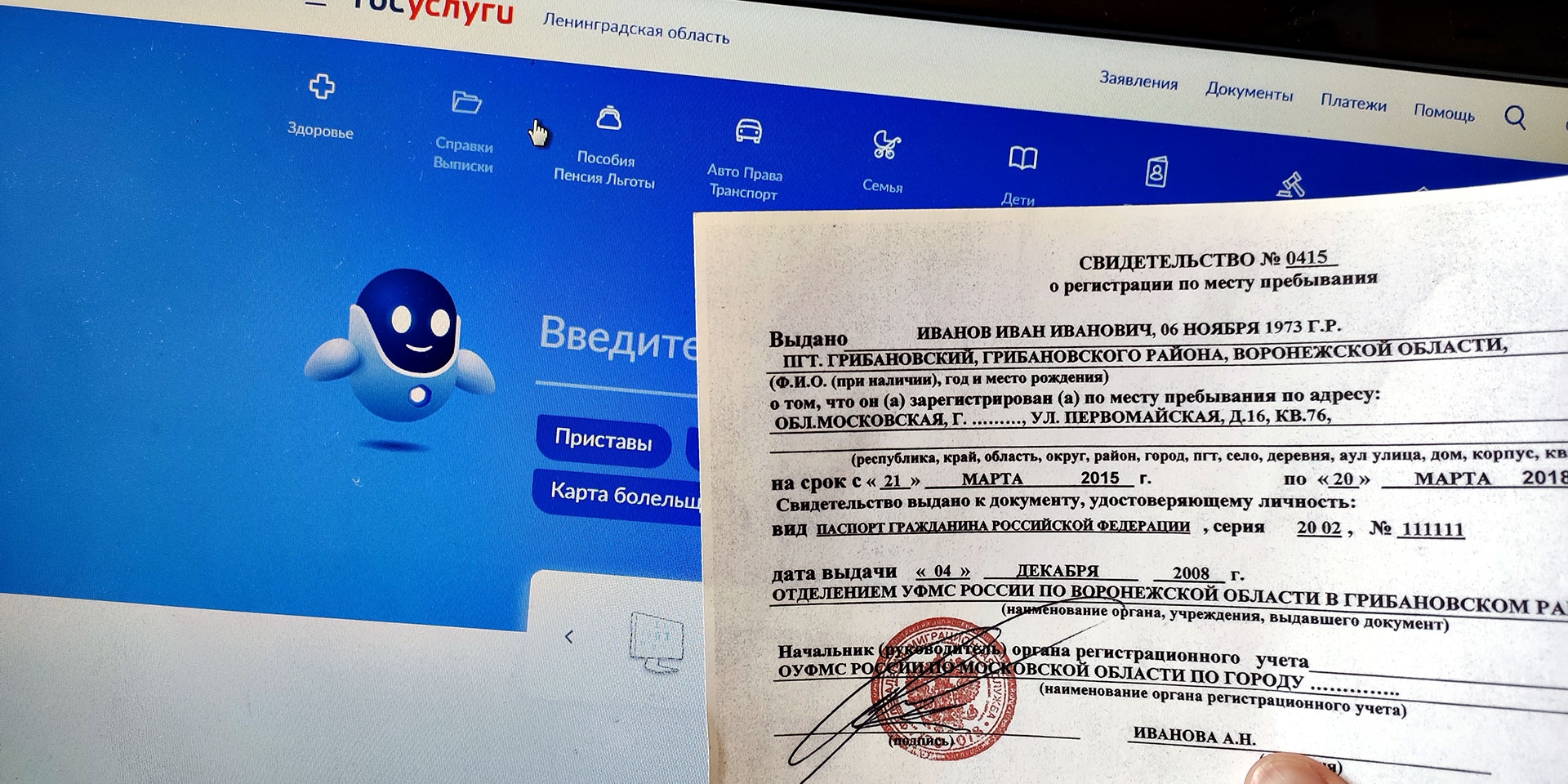 - Удостоверение личности;