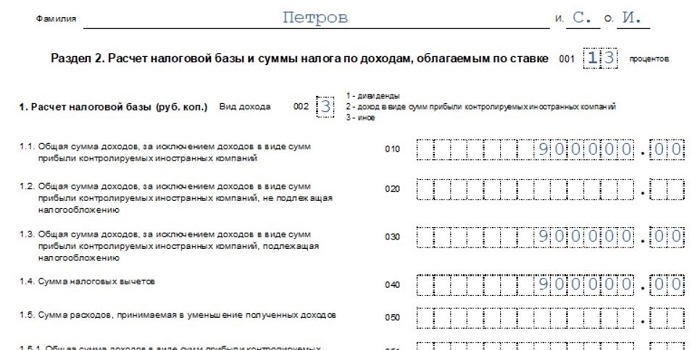 Отдельно остановимся на показателе со страницы 070, так как он перенесен в раздел 2 для расчета налога. Сюда вносится сумма дохода из расчета к Приложению 1.