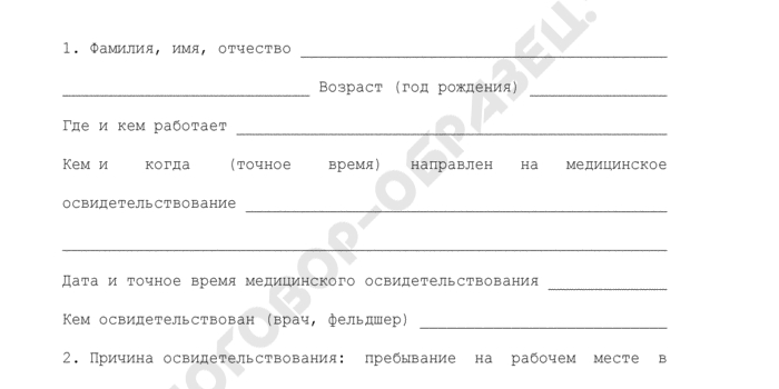 - Медицинская справка об освидетельствовании на состояние алкогольного опьянения.