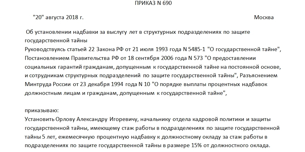 Следует также упомянуть о лицах, имеющих непосредственное отношение к государственной тайне. Они также имеют право на доплату, и ее минимальный размер составляет 5%. Максимально может доходить до 75%. Опять же, многое зависит от конкретного случая.