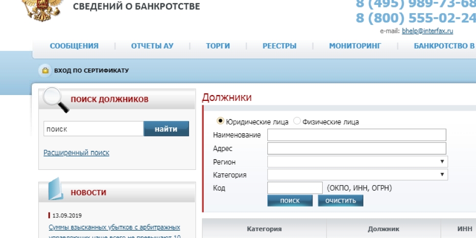 Портал ЕФРСБ создан для защиты интересов кредиторов, для предоставления широкому кругу лиц возможности узнать о банкротстве должника.