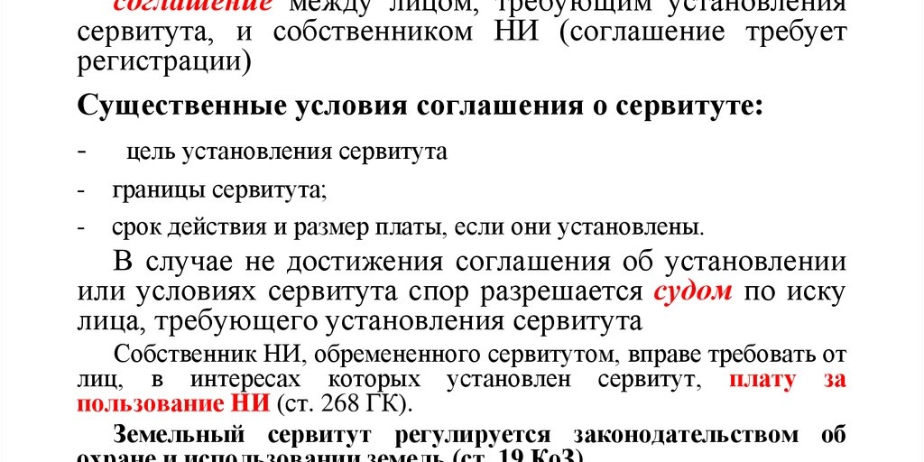 Для публичного сервитута согласие собственника земли, как и его отсутствие, абсолютно не имеет значения – решение принимается в результате публичных слушаний. Условия, порядок и сроки введения в действие утверждаются нормативным актом федерального или регионального значения.