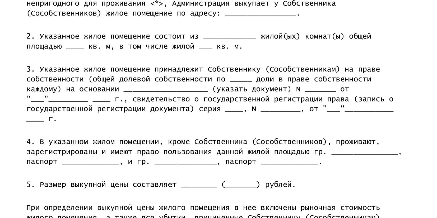 В частности, при определении рыночной стоимости жилья необходимо учитывать не только жилую площадь, но и долю в общем имуществе дома, а также в праве на земельный участок непосредственно под домом. Его рыночная стоимость также должна быть включена в сумму, предлагаемую собственнику, пропорционально его доле.