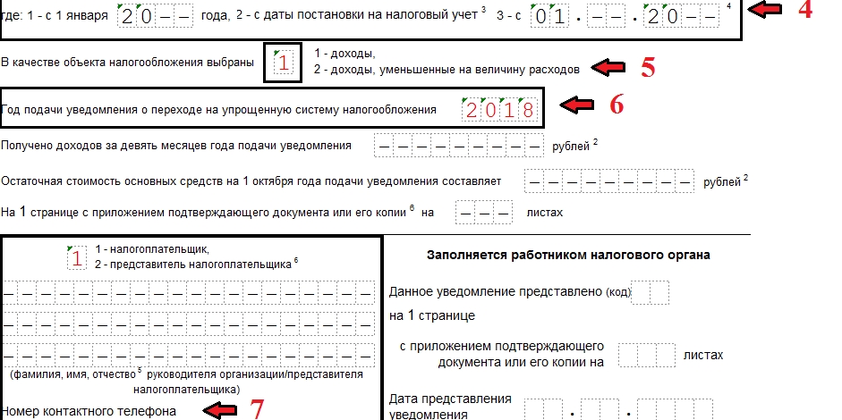 Для наглядности смотрите пример заполнения уведомления о переходе на УСН.